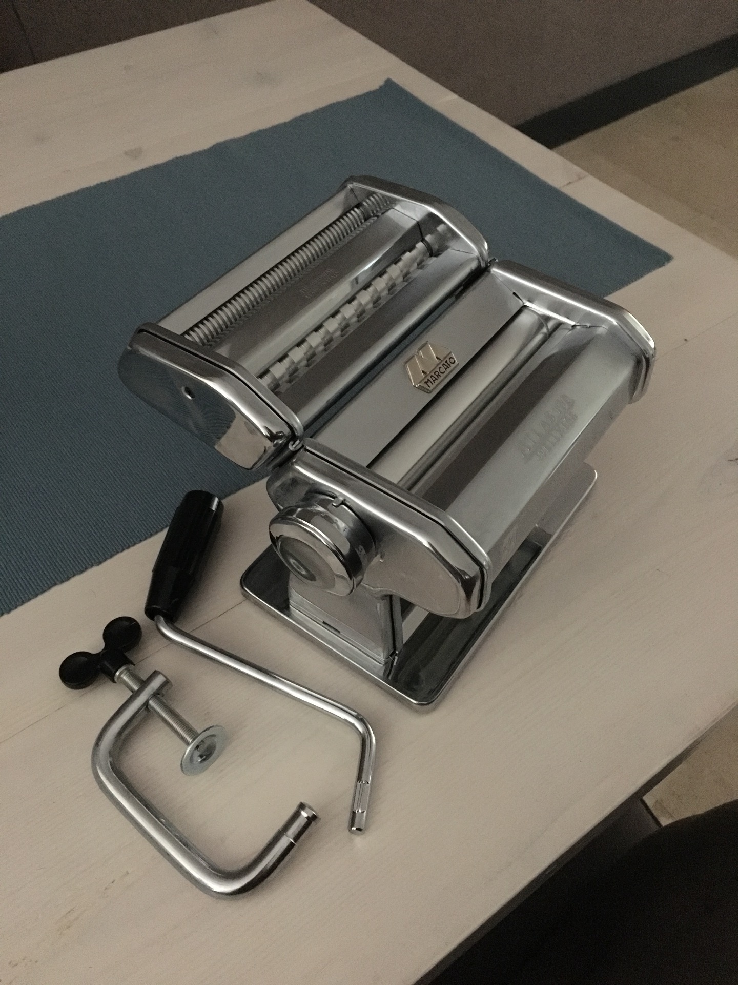 Om even op de Italiaanse toer te blijven heb ik meteen een recept gepakt om te bloggen dat ik zelf een uitdaging vind. We wilden al een tijd verse pasta zelf maken, maar wij wisten dat goeie apparatuur altijd licht(er) werk maakt. Dus zijn we eerst op zoek gegaan naar de – in onze optiek – beste pastamachine qua prijskwaliteit. Na een tijdje googelen zijn we gestuit op de Atlas 150 Wellness van Mercato. Wow, dat is een hele mond vol. Indrukwekkend design met goede reviews.