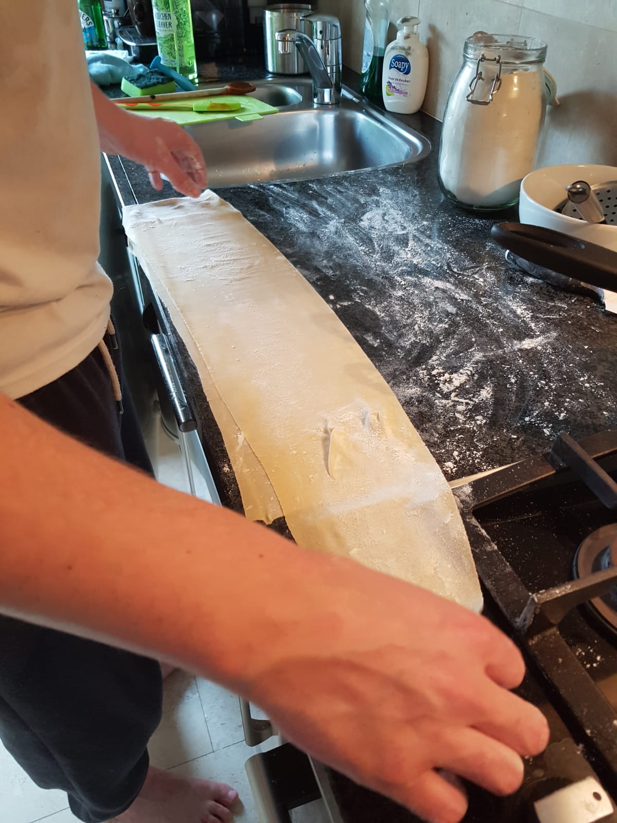 Laat ik nog even benadrukken dat er in mijn optiek 6890 verschillende soorten pasta zijn. Evenals de bereidingen ervan. Er zijn dus ook meerdere manieren om pasta te maken. Sommige deegsoorten moeten wat stugger zijn, sommige wat losser. Veel chefs maken deeg op een andere manier. Wij hebben het op deze manier geprobeerd en dit was prima. Met de onderstaande ingrediënten en werkwijze hebben wij al ravioli, fettucini, linguini, dunne cannelloni vellen en dikke lasagnebladeren gemaakt.